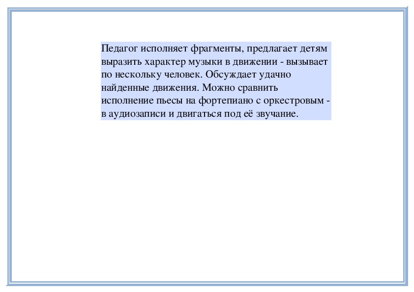 передавать движениями различный характер пьес.