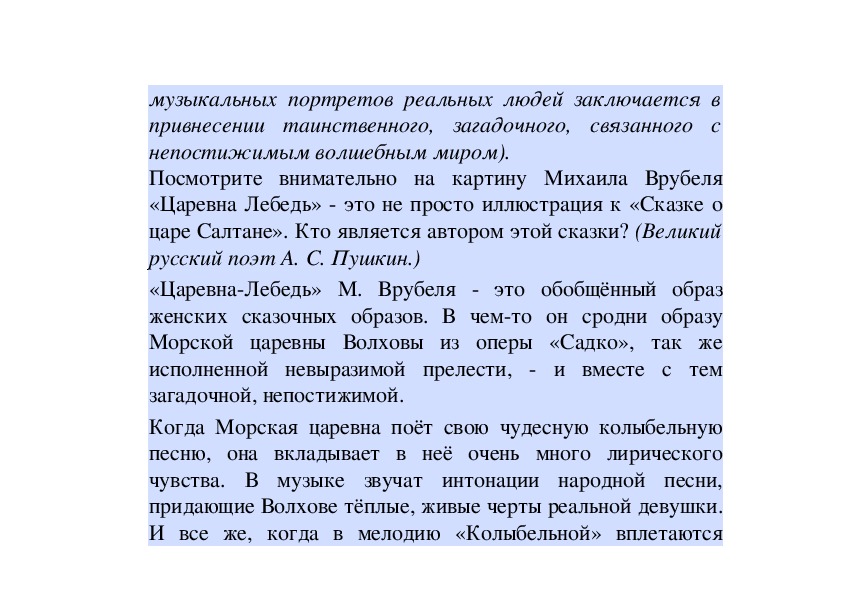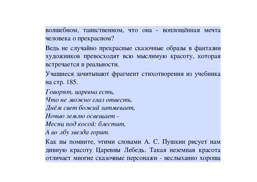 дивную красоту Царевны Лебедь. Такая неземная красота