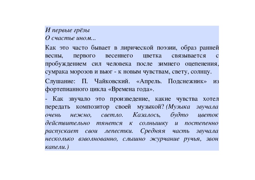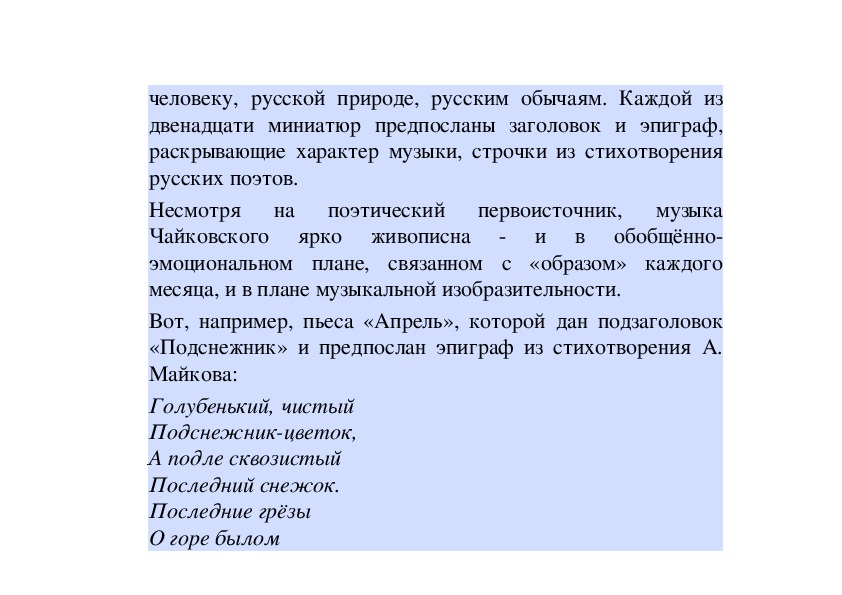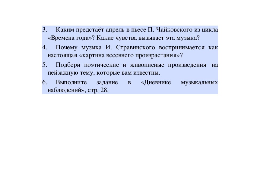 изобразительном искусстве?3. Каким предстаёт апрель в пьесе П. Чайковского из цикла