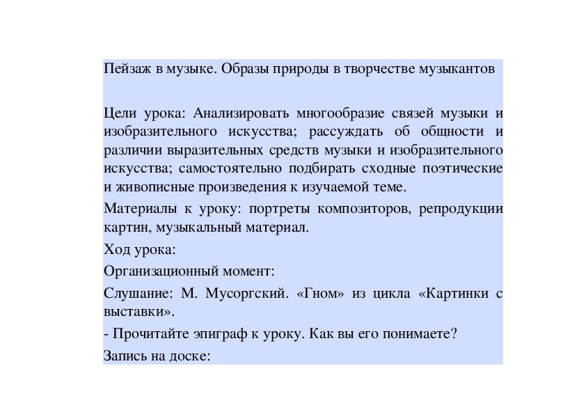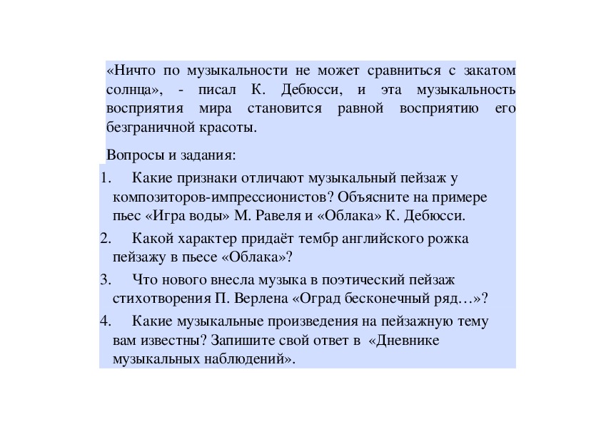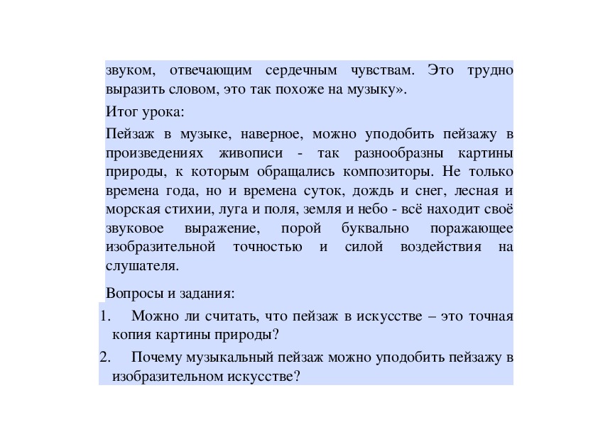 2. Почему музыкальный пейзаж можно уподобить пейзажу в