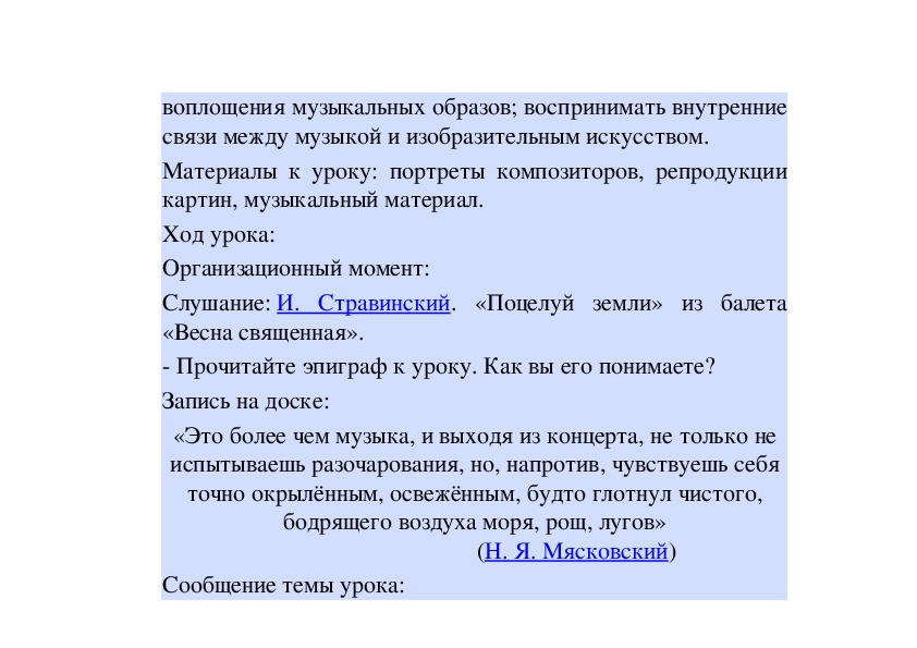 Материалы к уроку: портреты композиторов, репродукции картин, музыкальный материал.