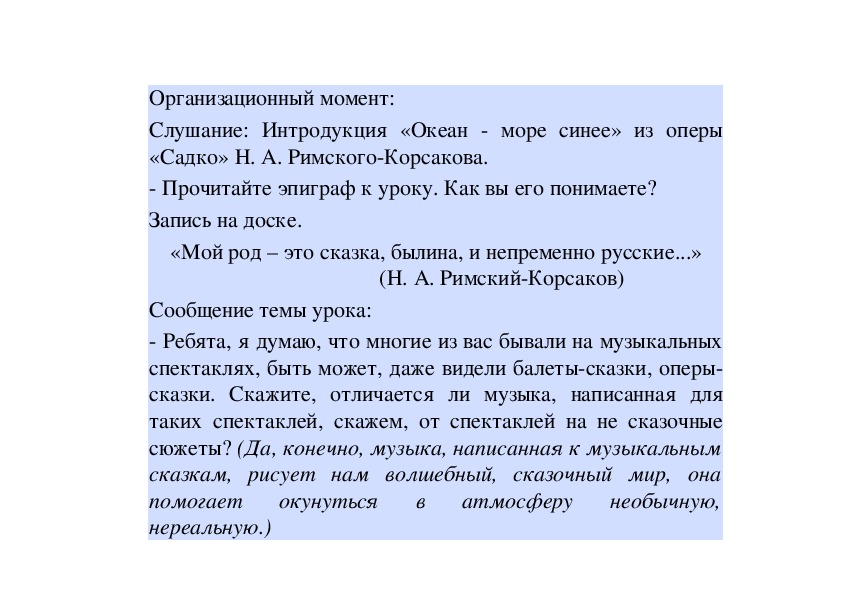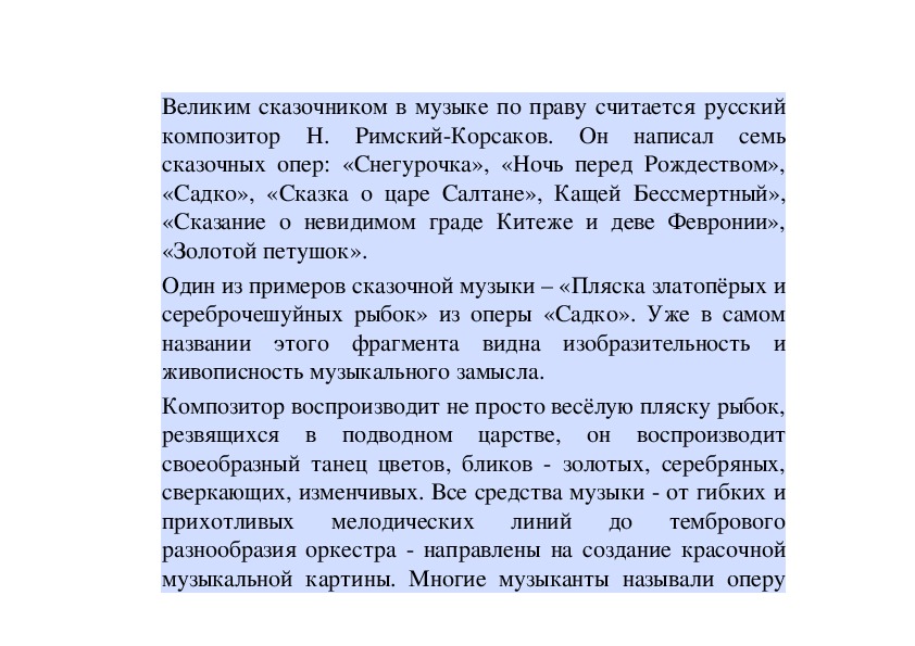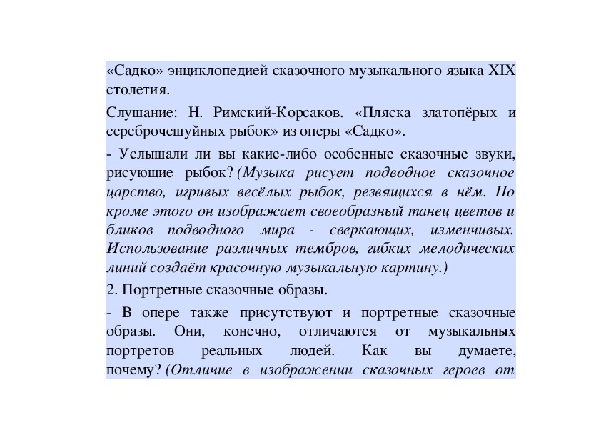 Слушание: Н. Римский-Корсаков. «Пляска златопёрых и сереброчешуйных рыбок» из оперы «Садко».