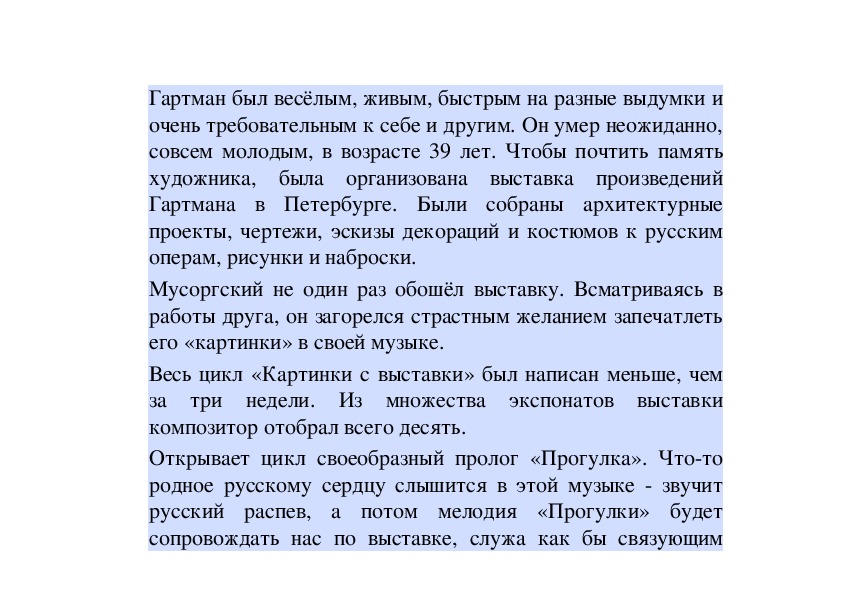 выставки». Мы с вами слушали одну из пьес этого цикла,