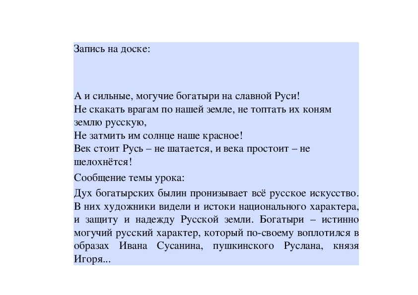 приводит к утверждению уже знакомой «богатырской» темы.Картина «Три богатыря» была завершена В. Васнецовым в