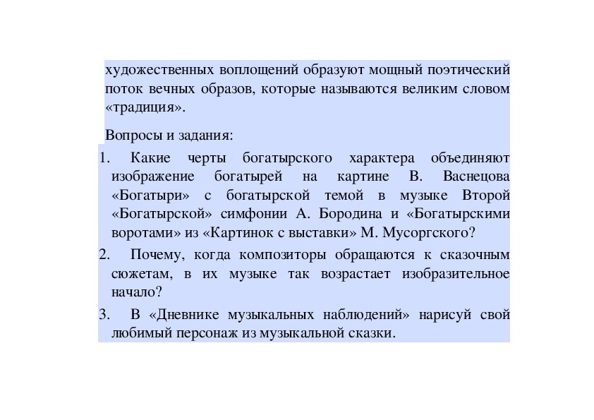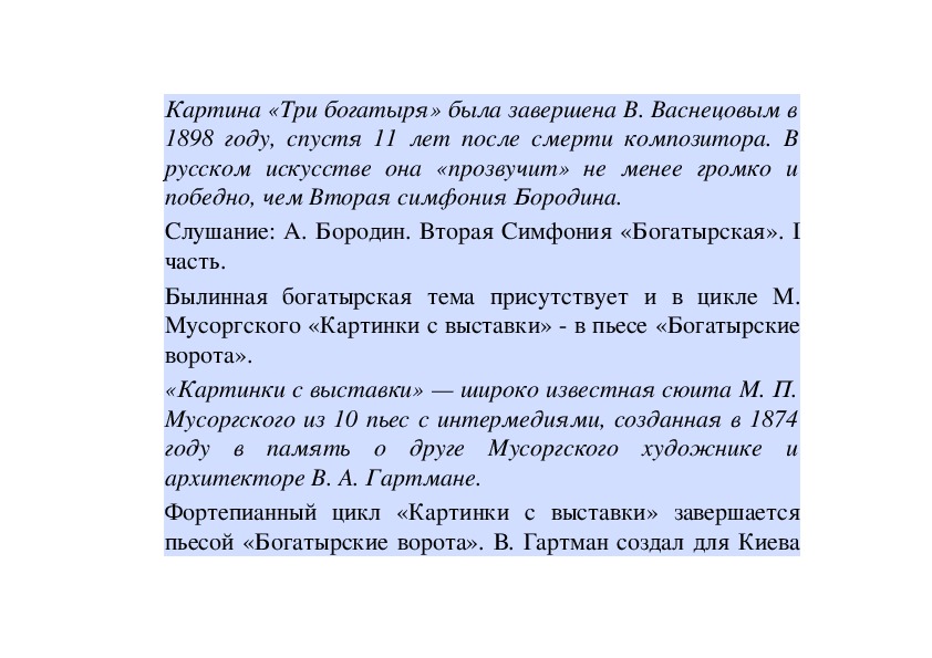 Слушание: А. Бородин. Вторая Симфония «Богатырская».