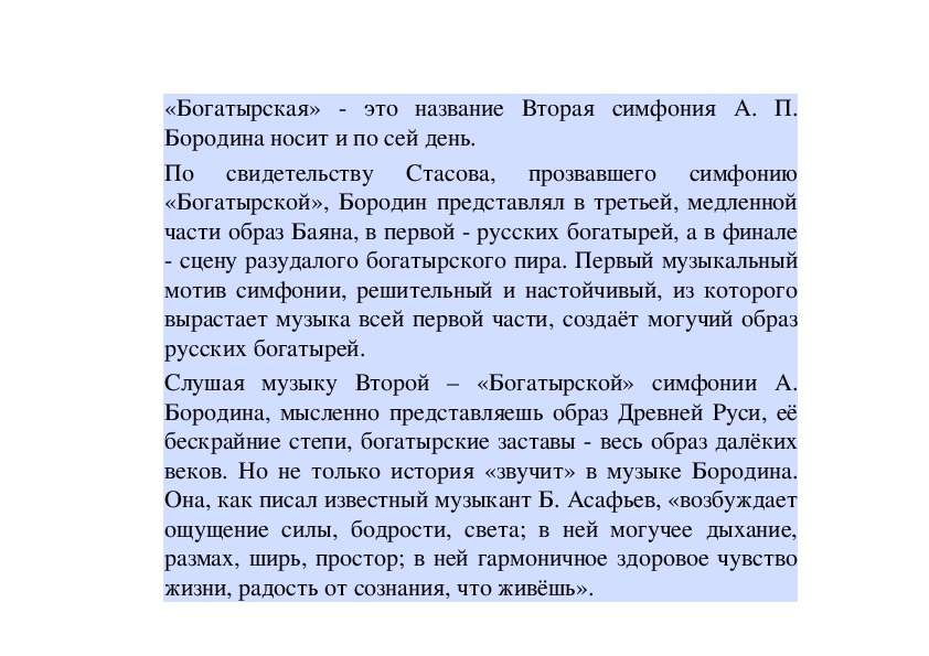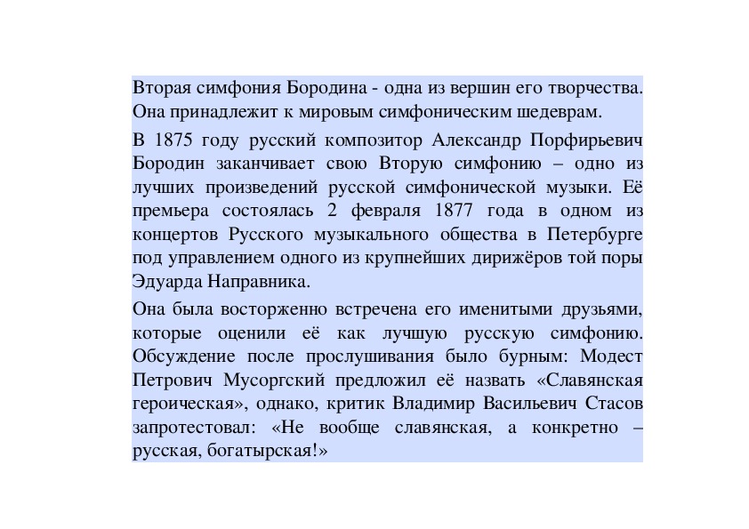 русская, богатырская!»«Богатырская» это название Вторая симфония А. П.