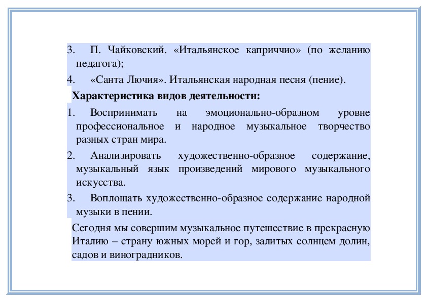 4. «Санта Лючия». Итальянская народная песня (пение).