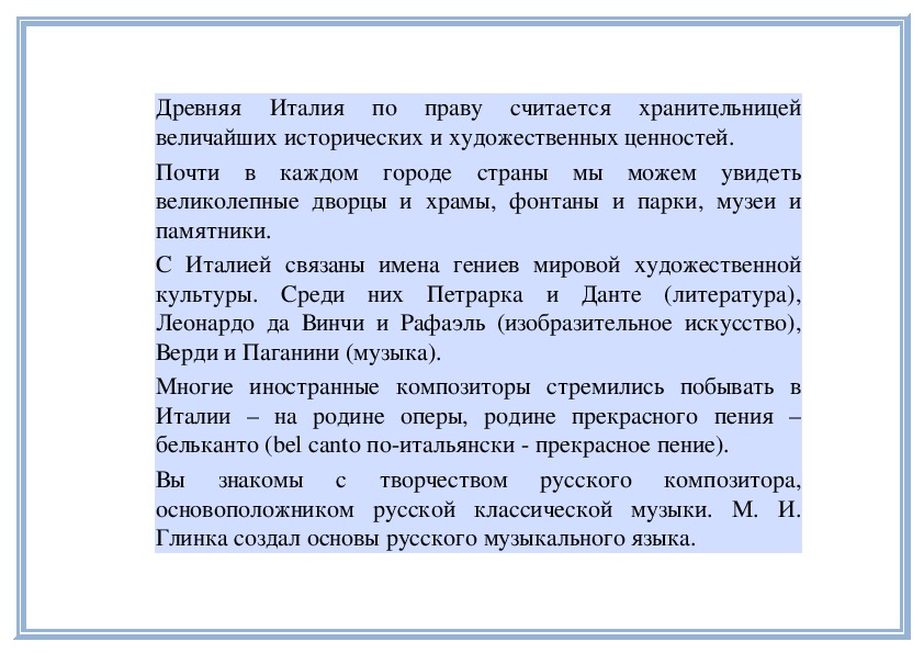 1. Италия - страна хранительница величайших культурно исторических ценностей (краткий художественно исторический экскурс).