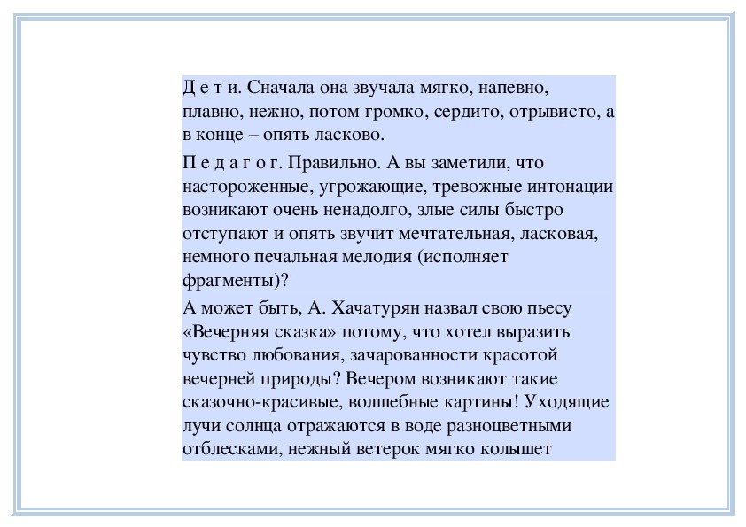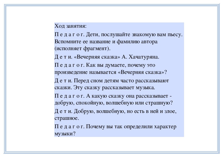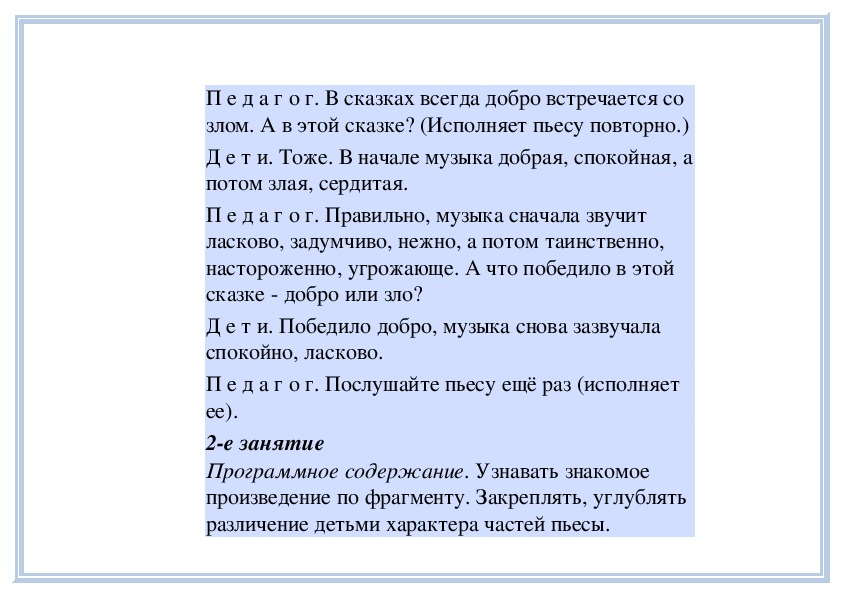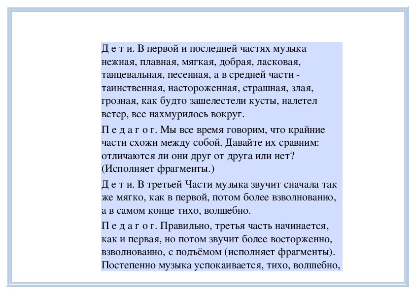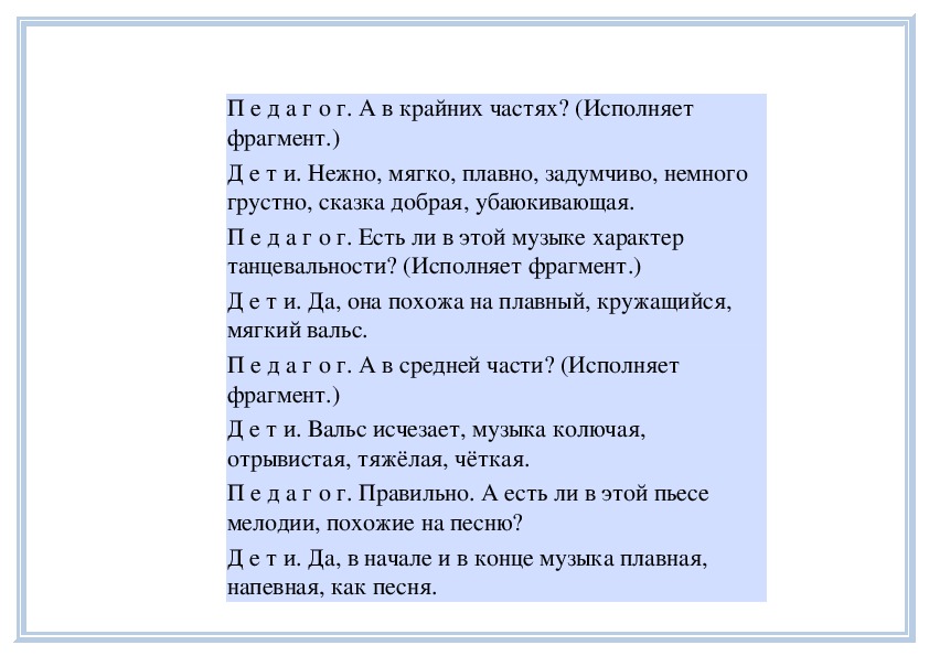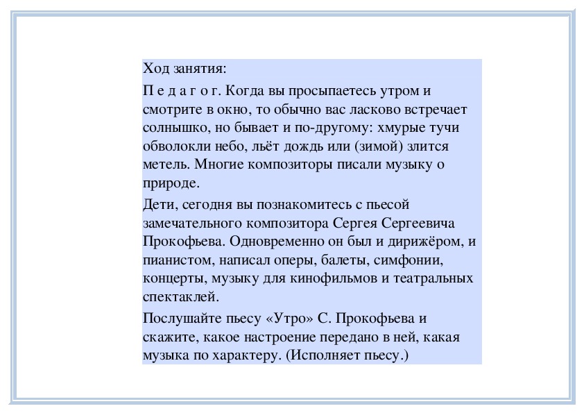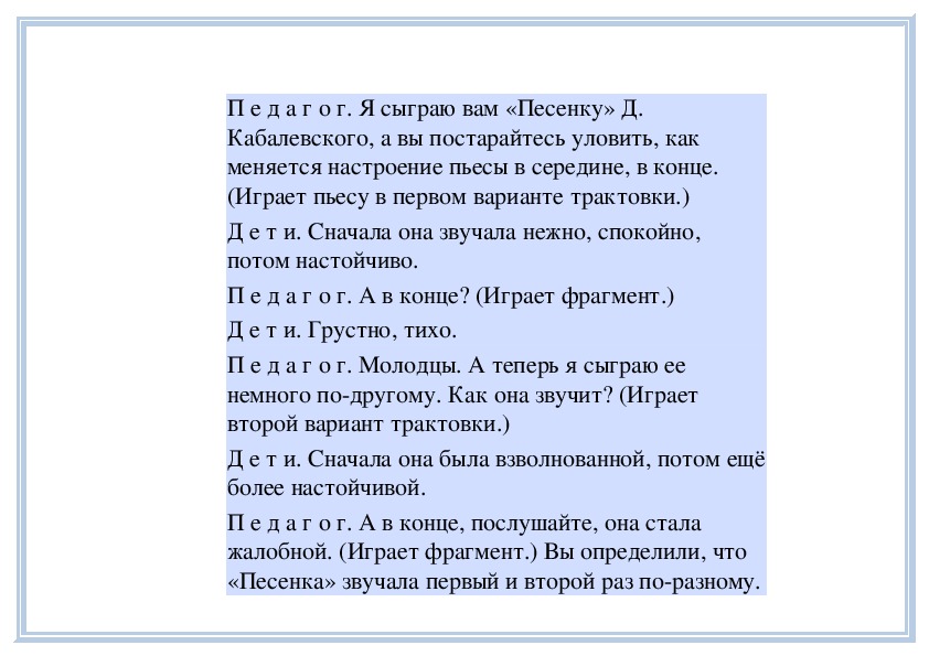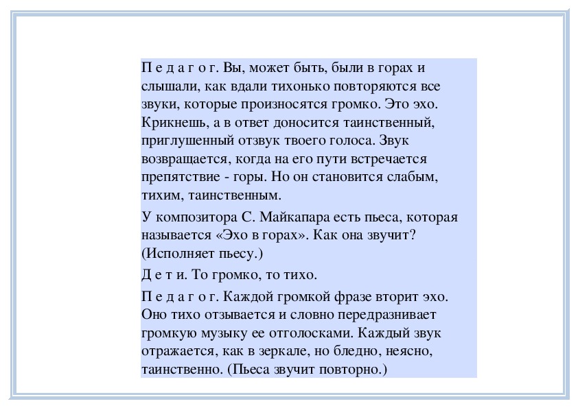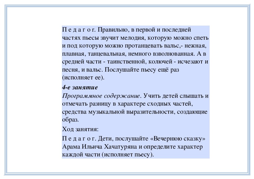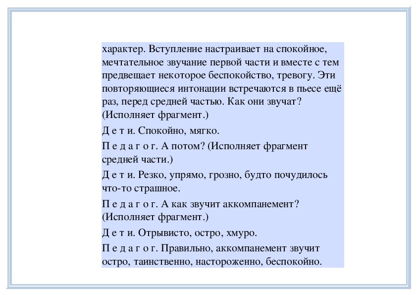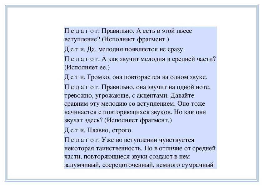 П е д а г о г. Вы слушали на прошлом занятии пьесу
