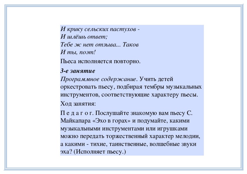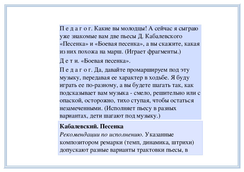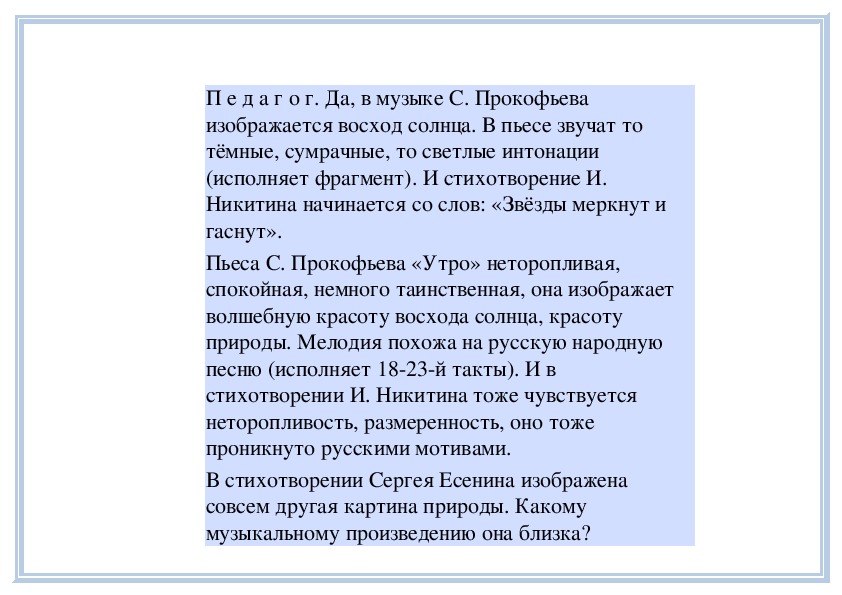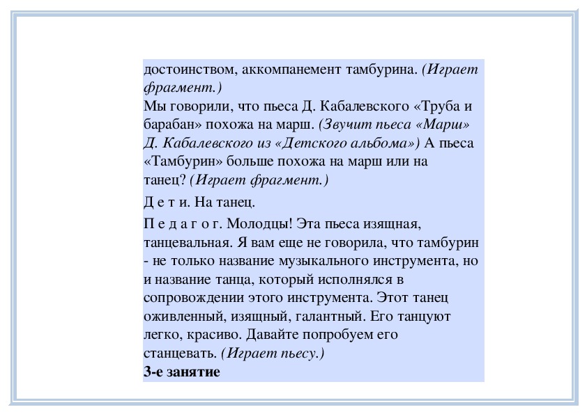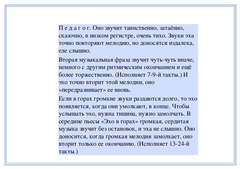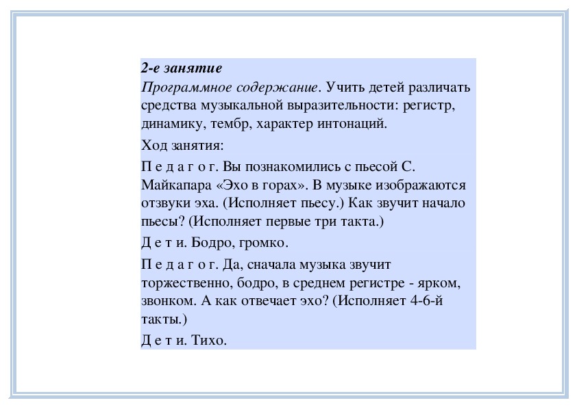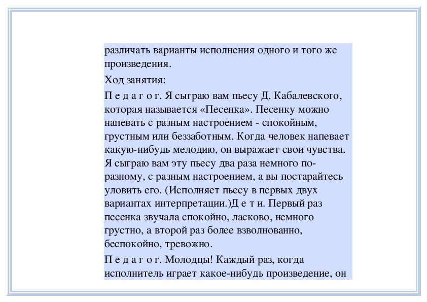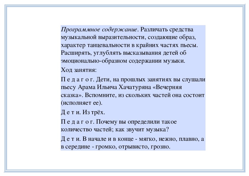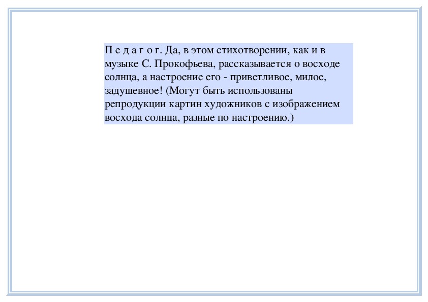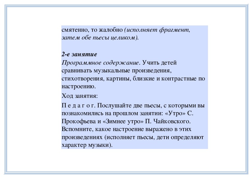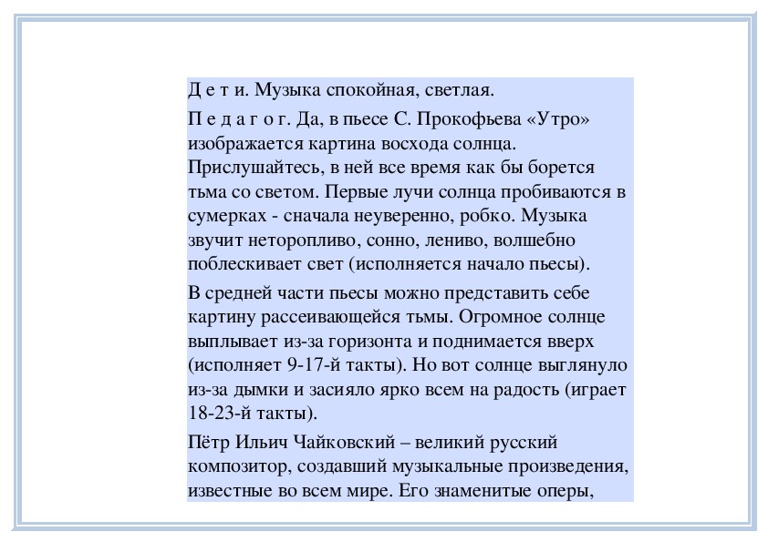 П е д а г о г. Вы слушали на прошлом занятии пьесу