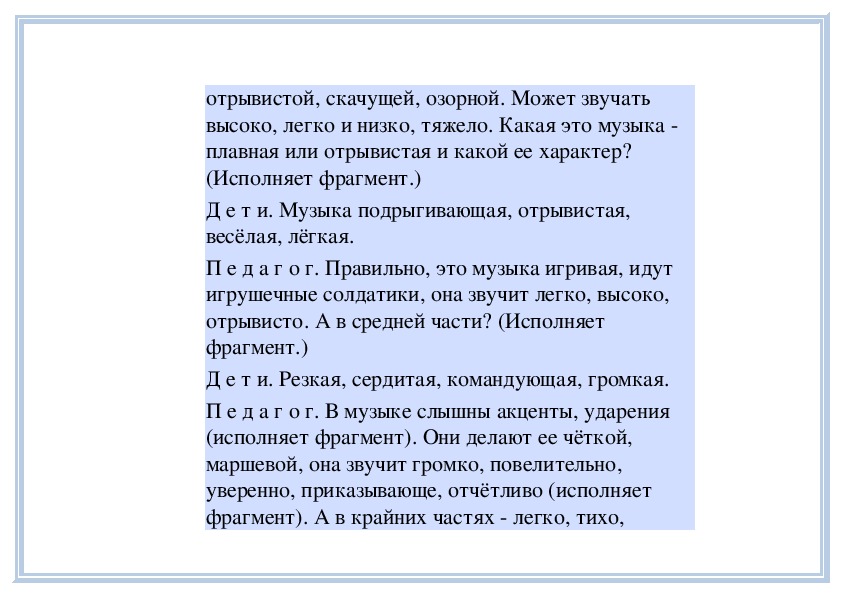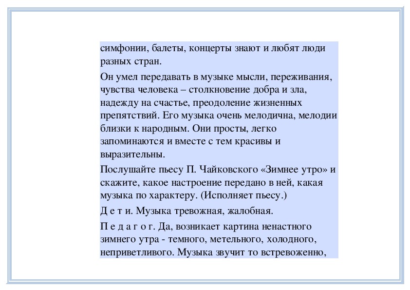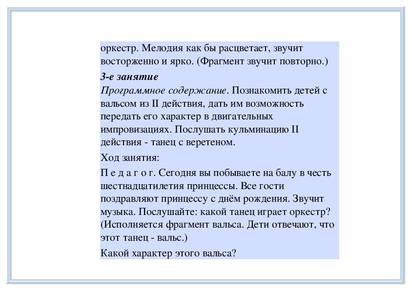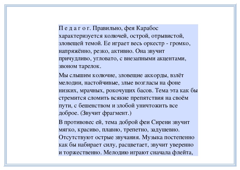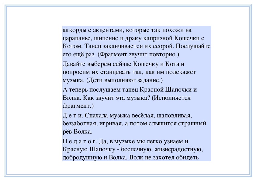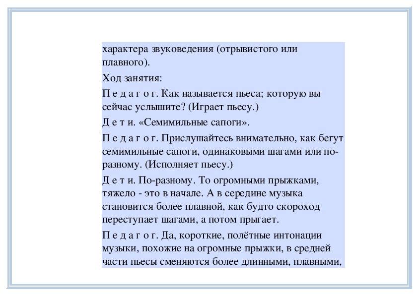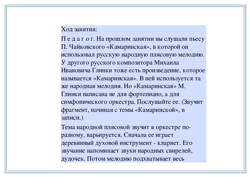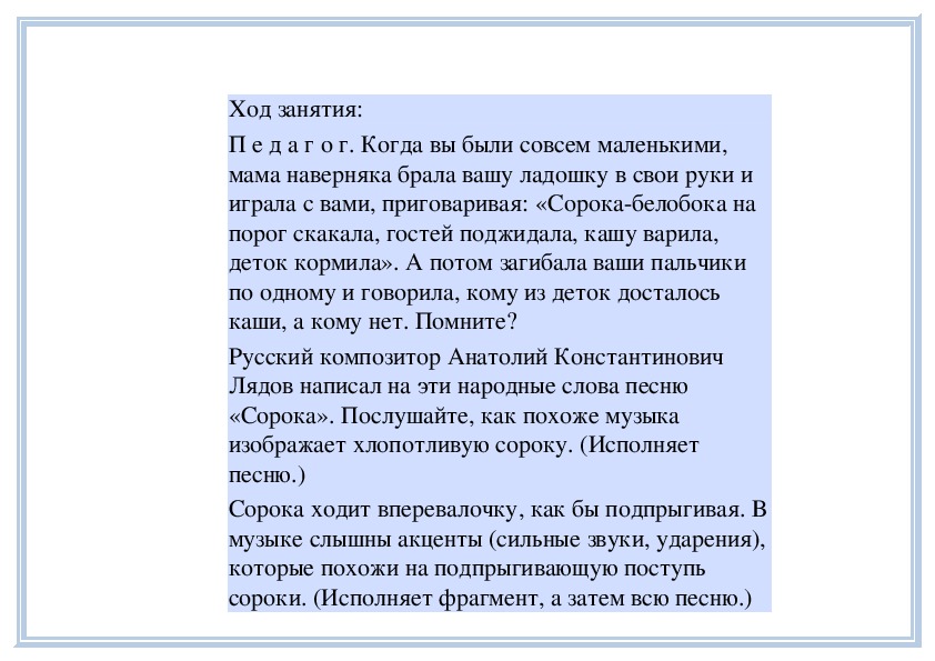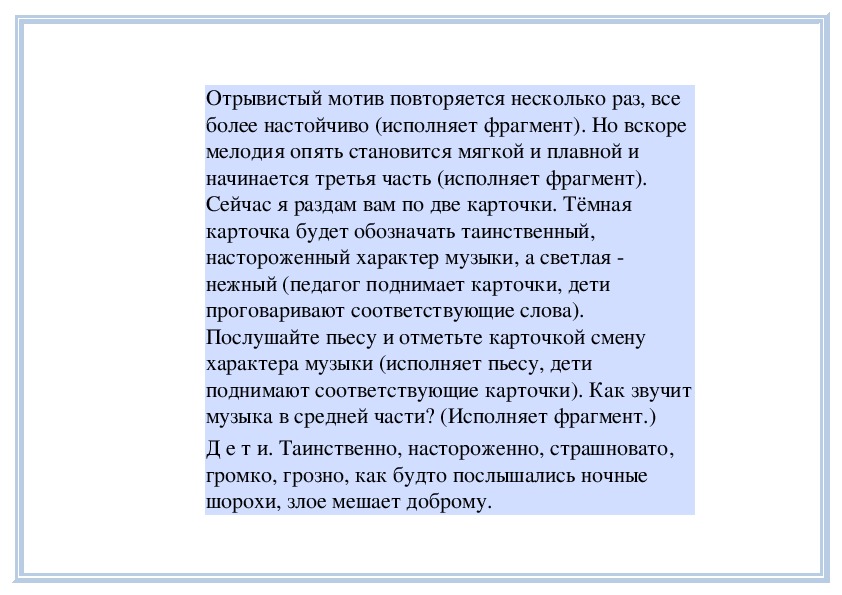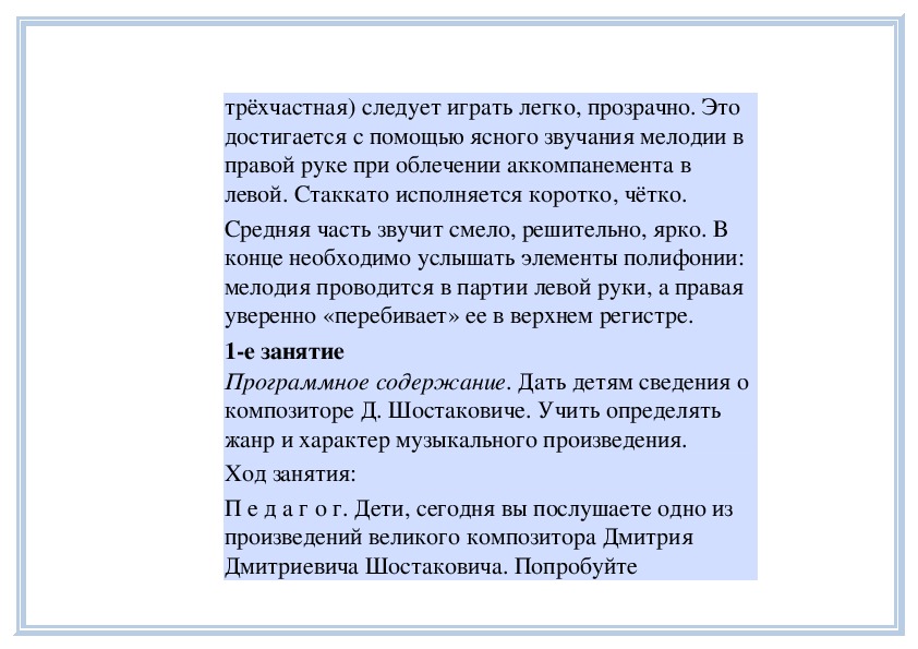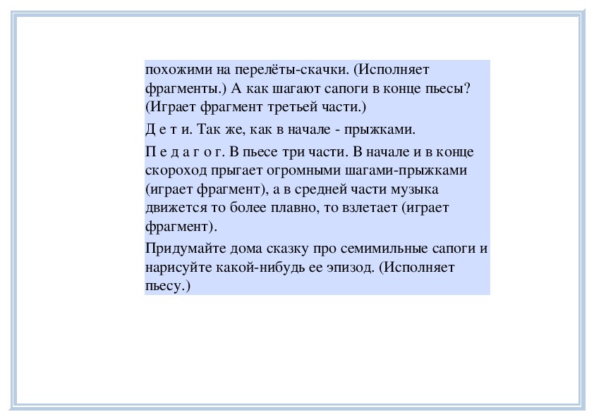 П е д а г о г. Вы слушали на прошлом занятии пьесу