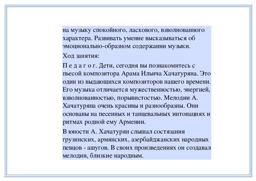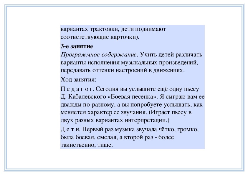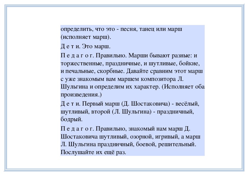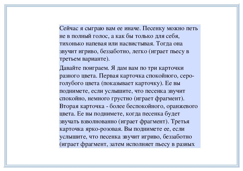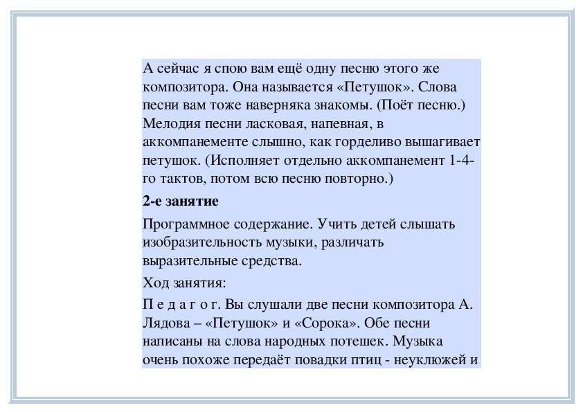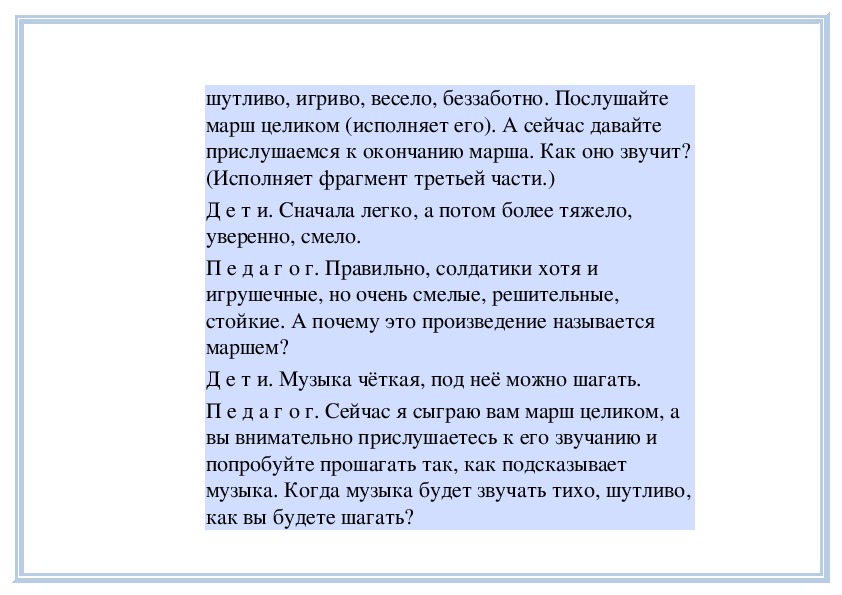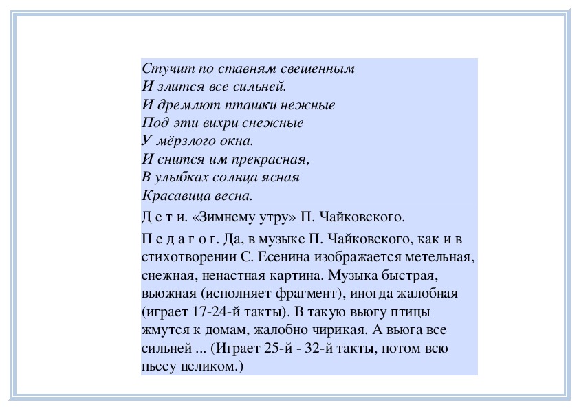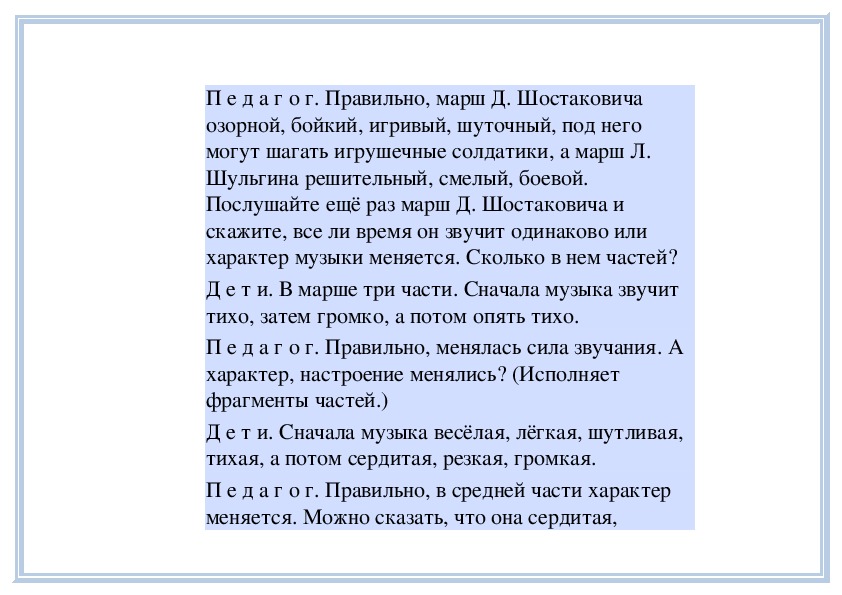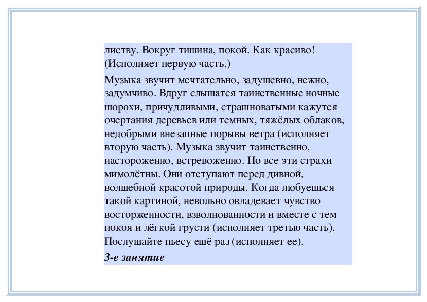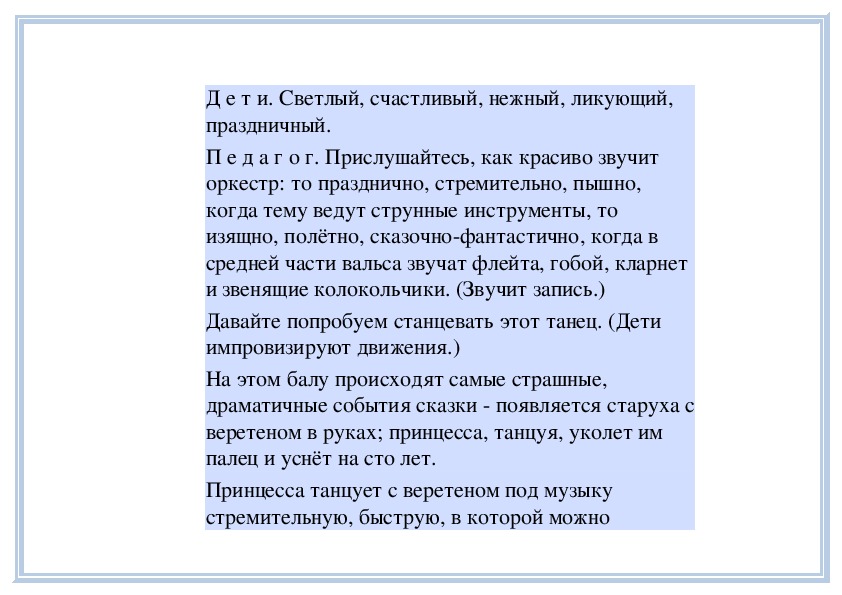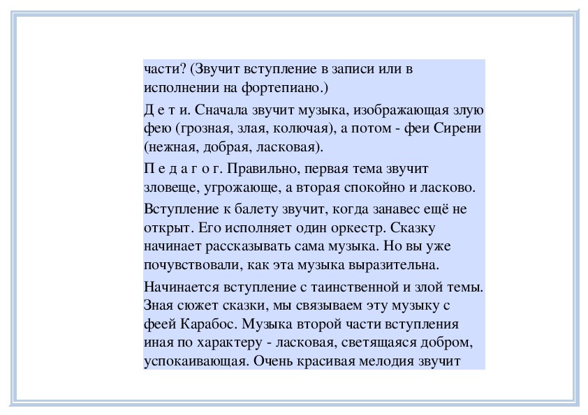 П е д а г о г. Вы слушали на прошлом занятии пьесу