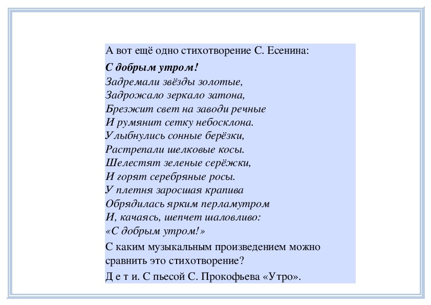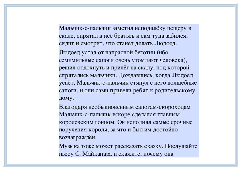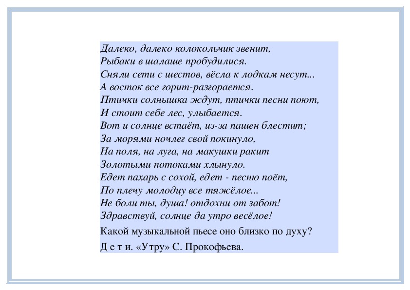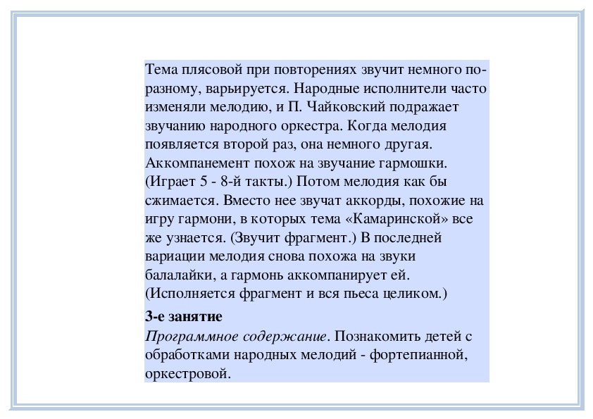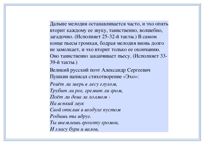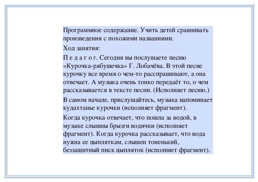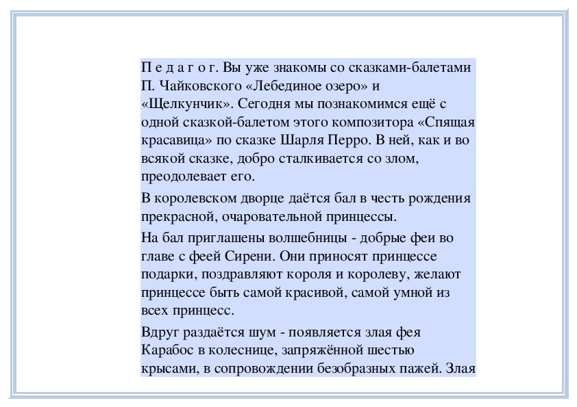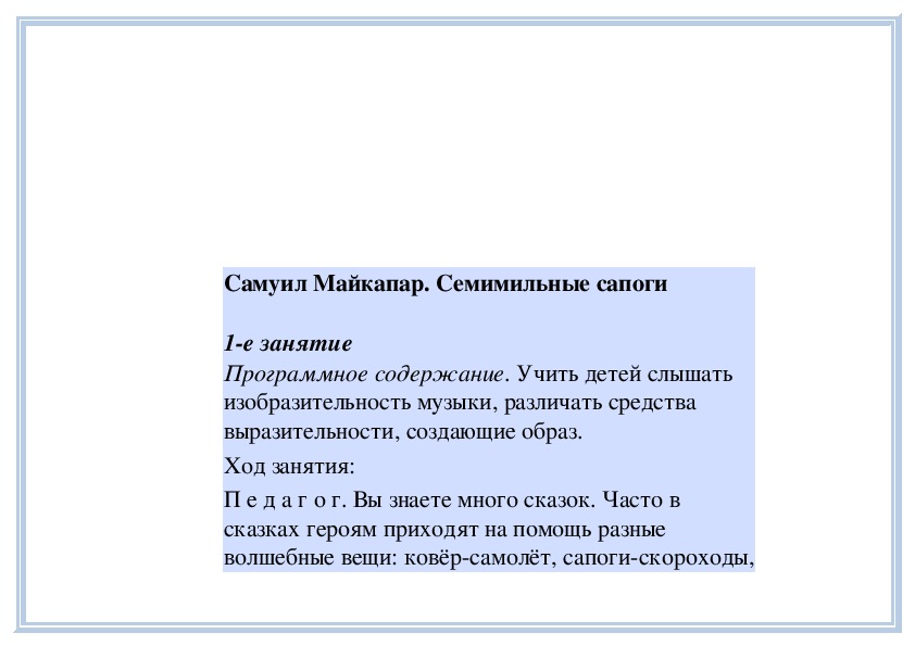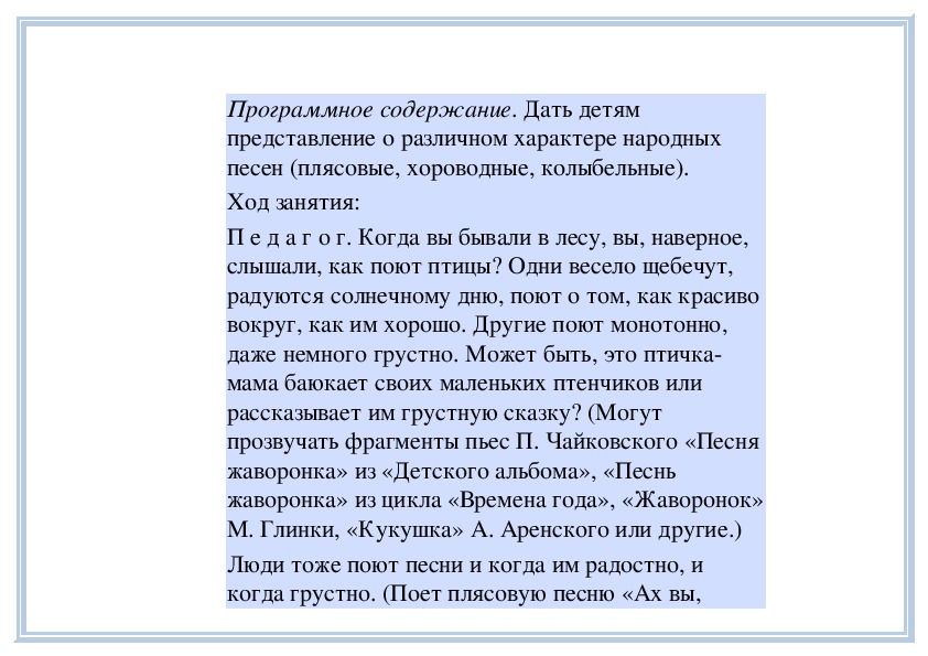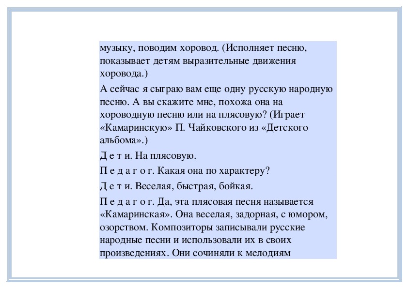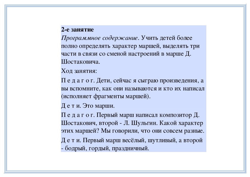 П е д а г о г. Вы слушали на прошлом занятии пьесу