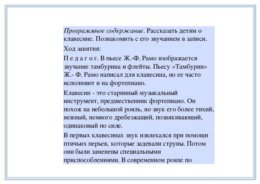 клавесине. Познакомить с его звучанием в записи.