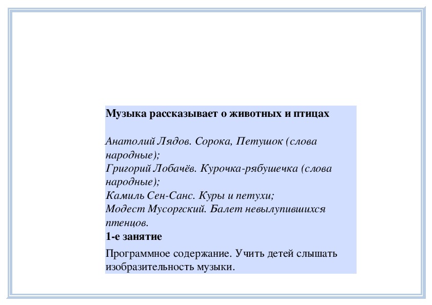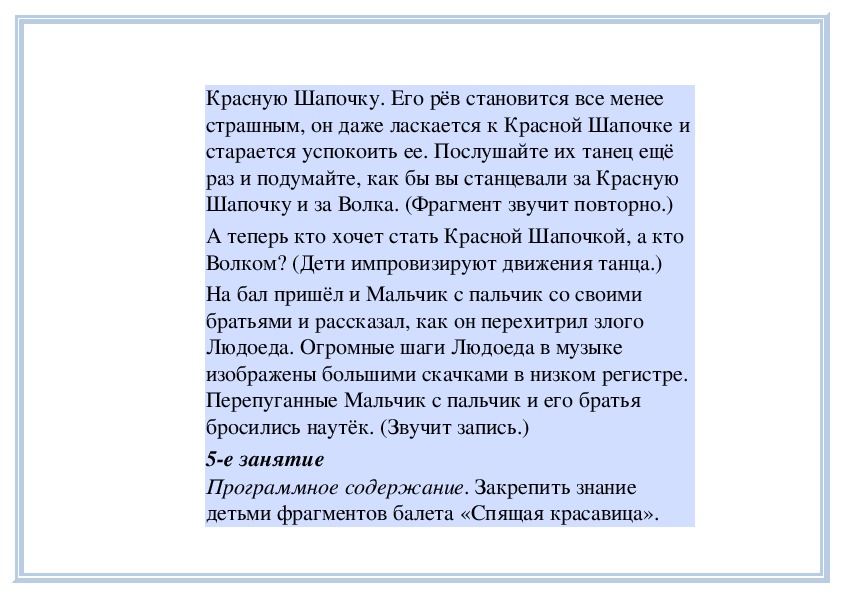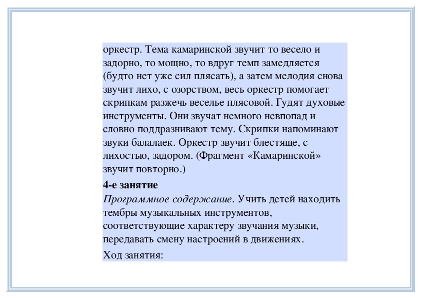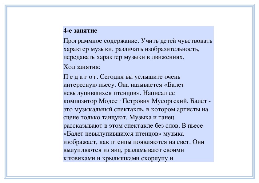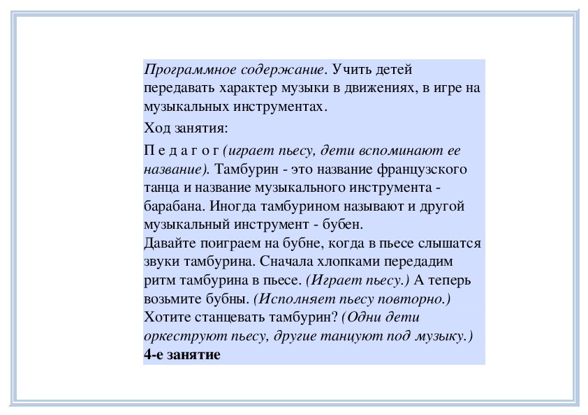 4е занятиеПрограммное содержание. Рассказать детям о