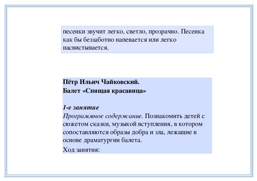 прозвучать фрагменты пьес П. Чайковского «Песня