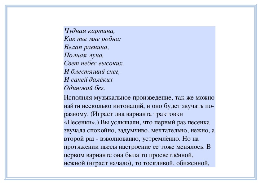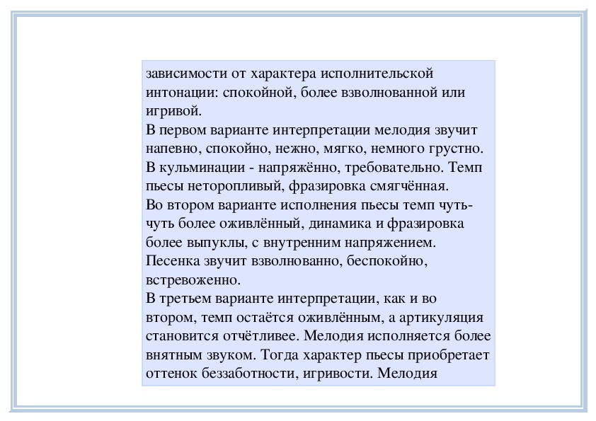 украшениями! (Играет только мелодию.) Еезвучание чистое, прозрачное, светлое, похоже на