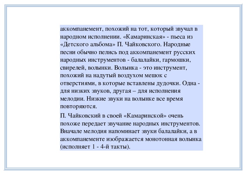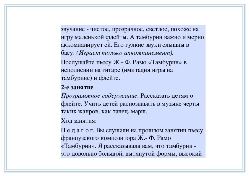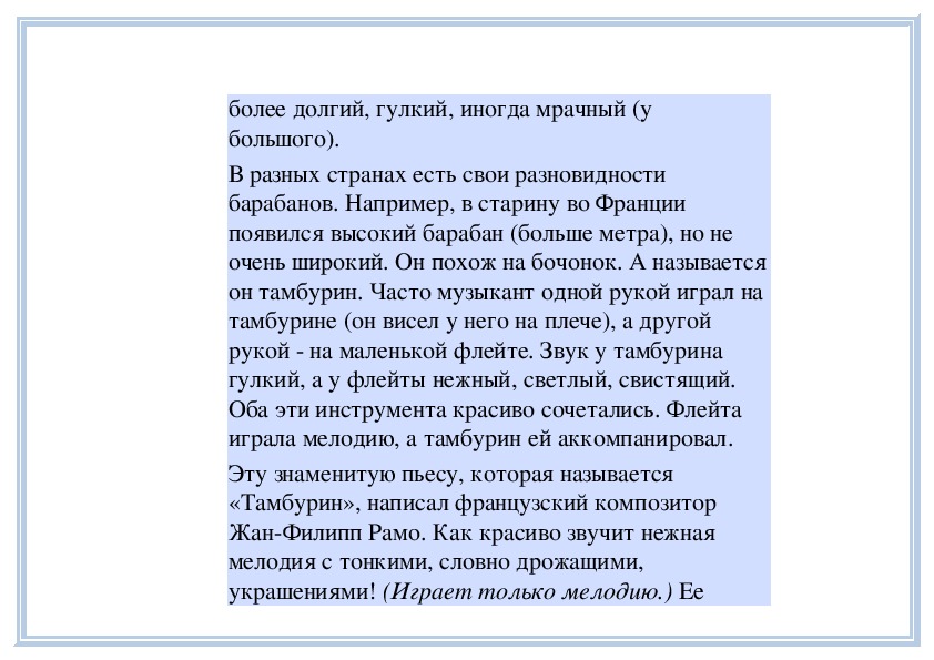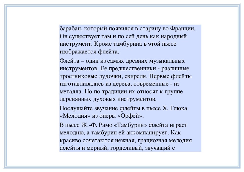 звучание тамбурина и флейты. Пьесу «Тамбурин»