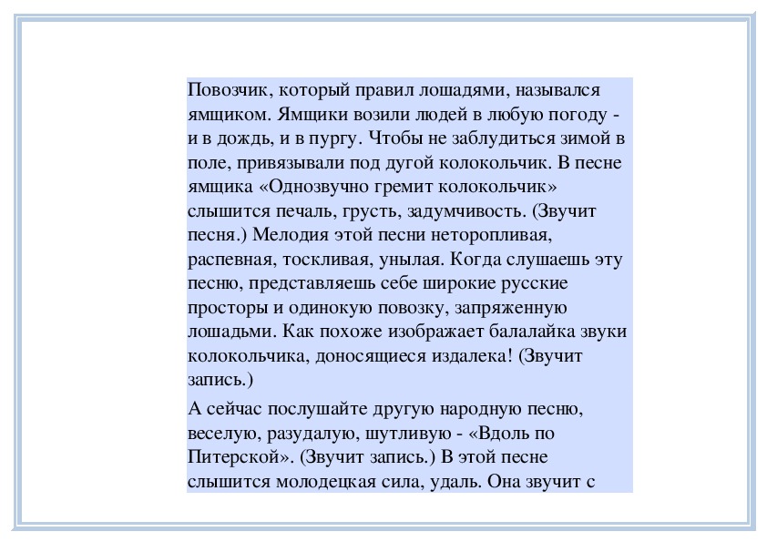 Питерской». (Звучит запись.) В этой песне