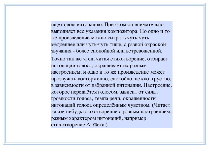 взволнованно, с подъёмом (исполняет фрагменты).
