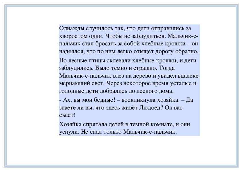рассказывает им грустную сказку? (Могут