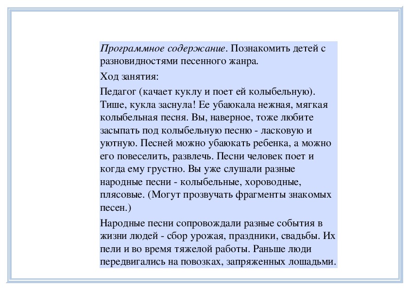 Программное содержание. Рассказать детям о