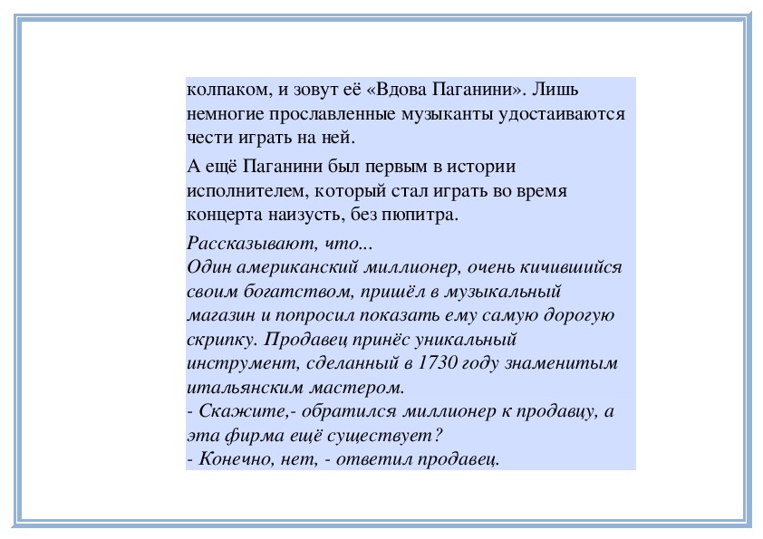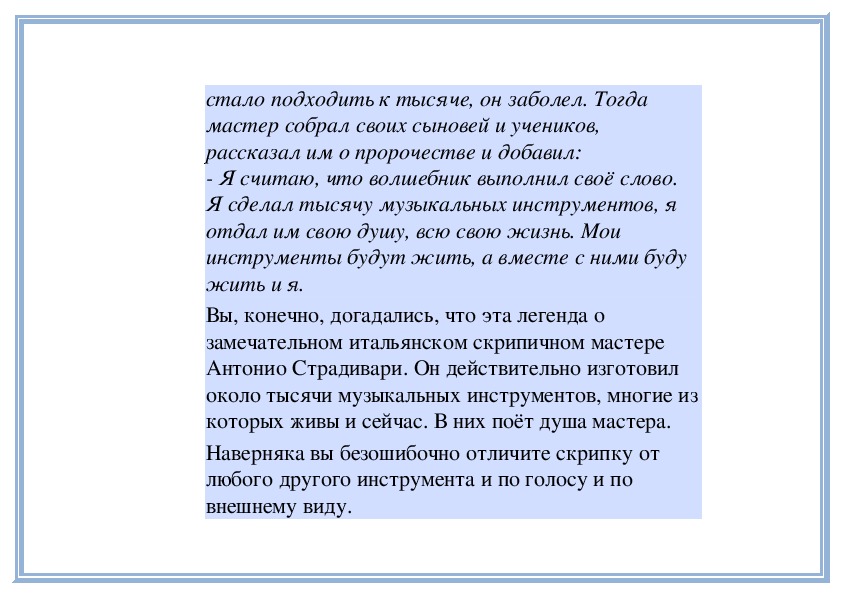 изготовленной им скрипке.