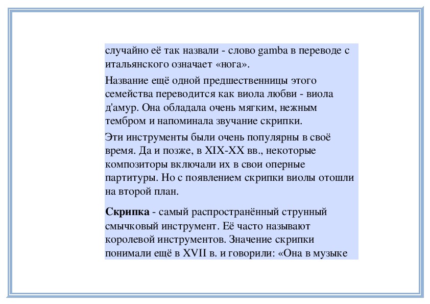 внешнему виду.Но скрипка утвердилась в музыкальной практике