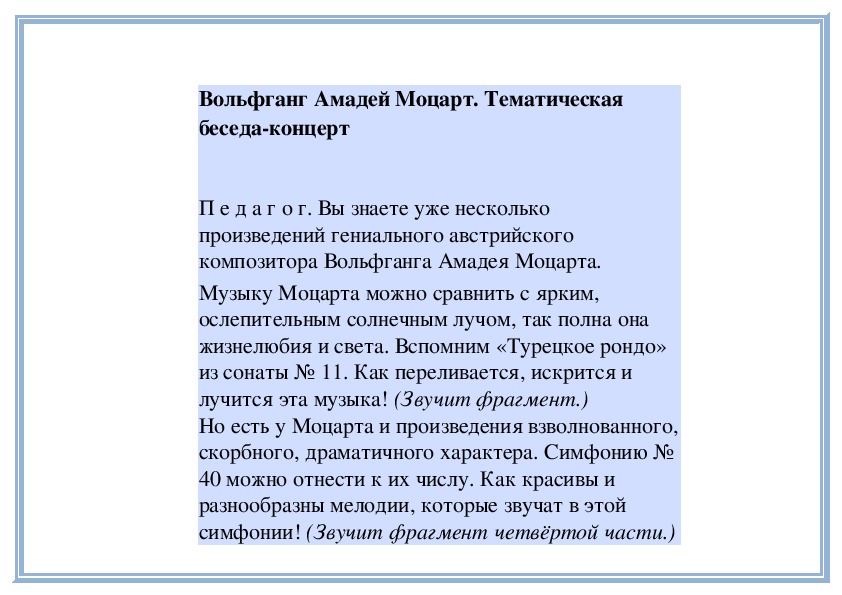 П е д а г о г. Правильно. Когда мелодия звучит