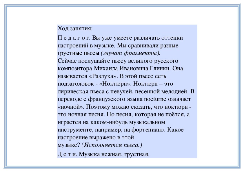 П е д а г о г. Да, музыка звучит как грустное