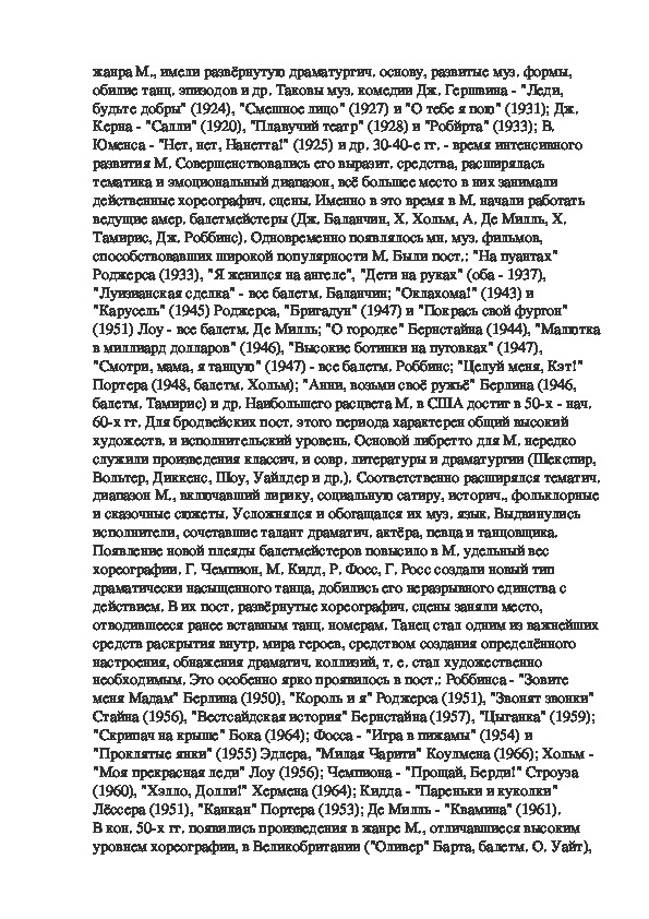 балетм. Тамирис) и др. Наибольшего расцвета М. в США достиг в 50х нач.