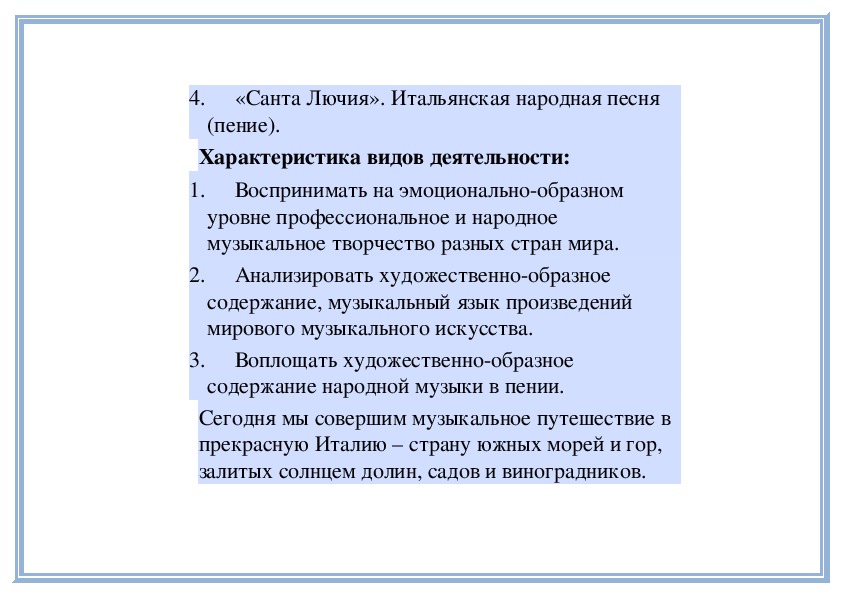 2. Применять знания основных средств музыкальной выразительности при анализе прослушанного произведения.