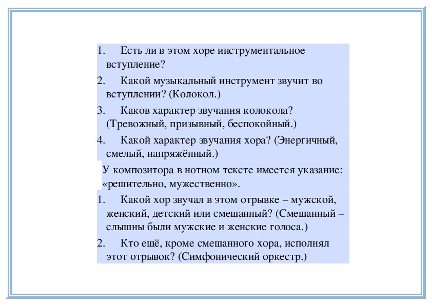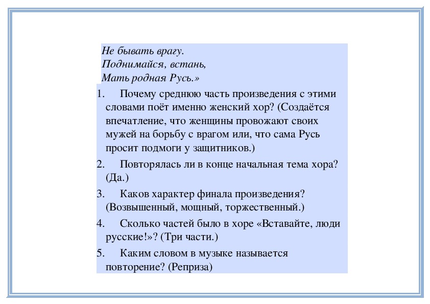 2. Отражение патриотических черт русского характера в музыке хора «Вставайте, люди русские!» из кантаты С. Прокофьева «Александр Невский».