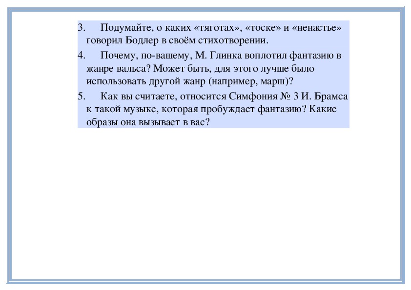 1. И. Брамс. Симфония № 3. III часть. Фрагмент (слушание).