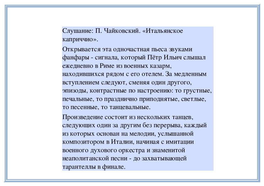 3. П. Чайковский. «Итальянское каприччио» (по