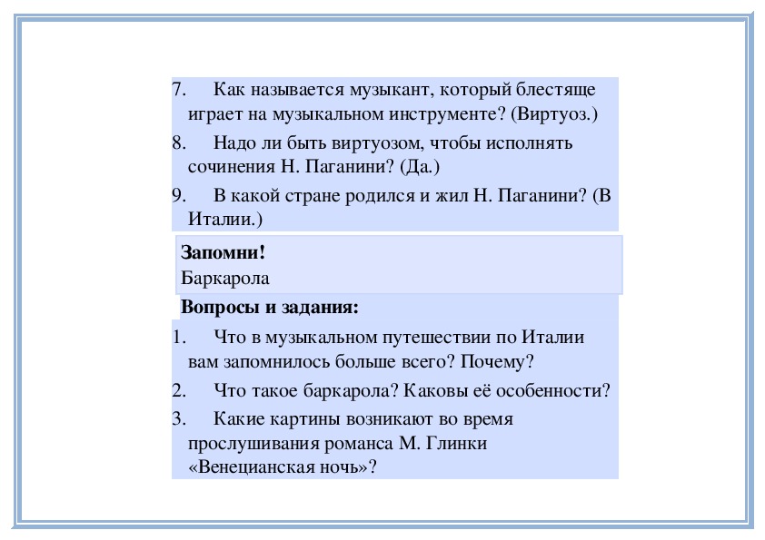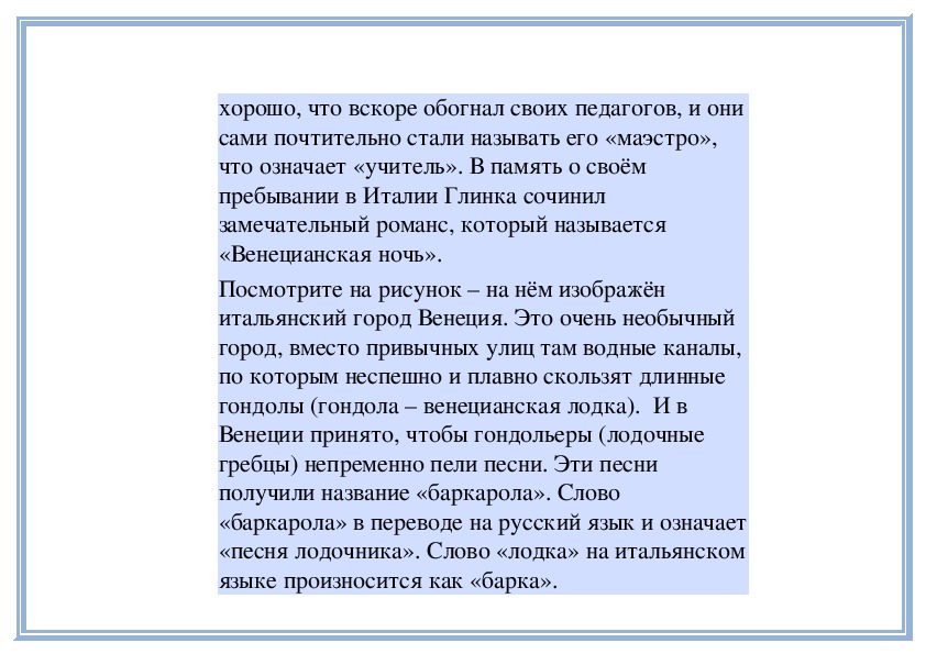 «Венецианская ночь».Знакомство с жанром баркаролы.