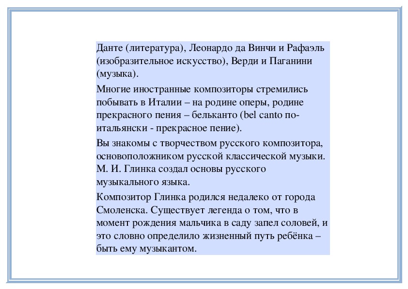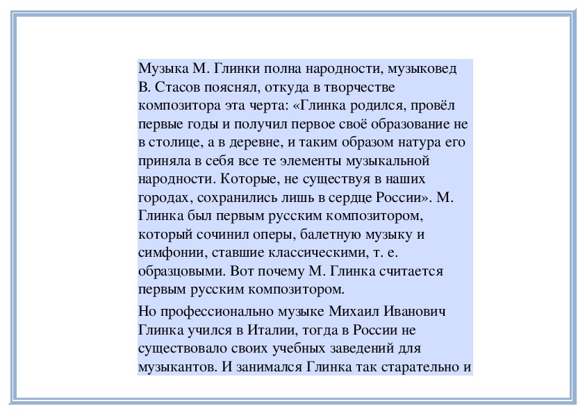 М. И. Глинка создал основы русского