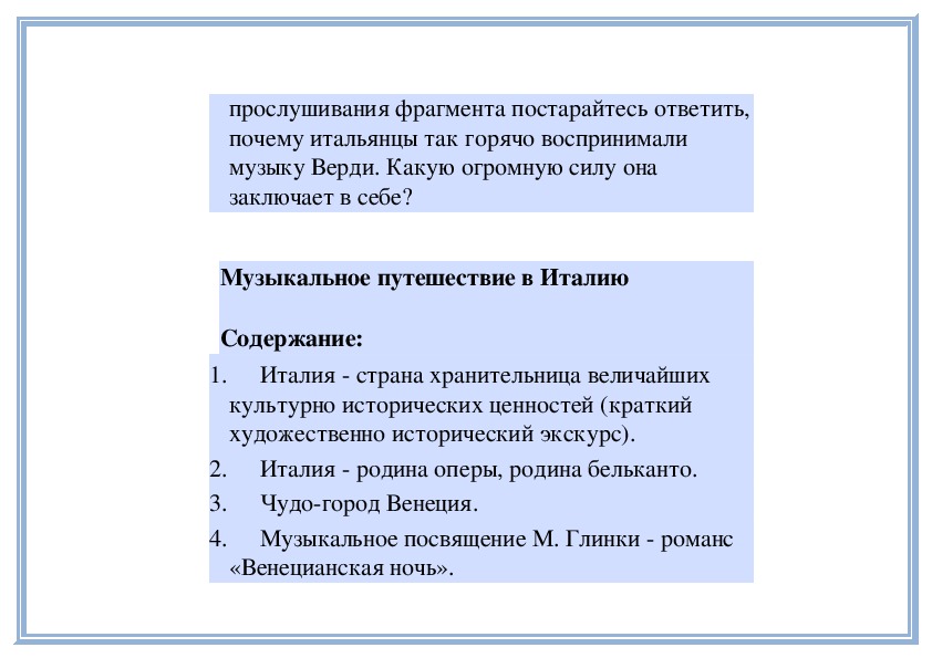 Музыкальное путешествие в Италию
