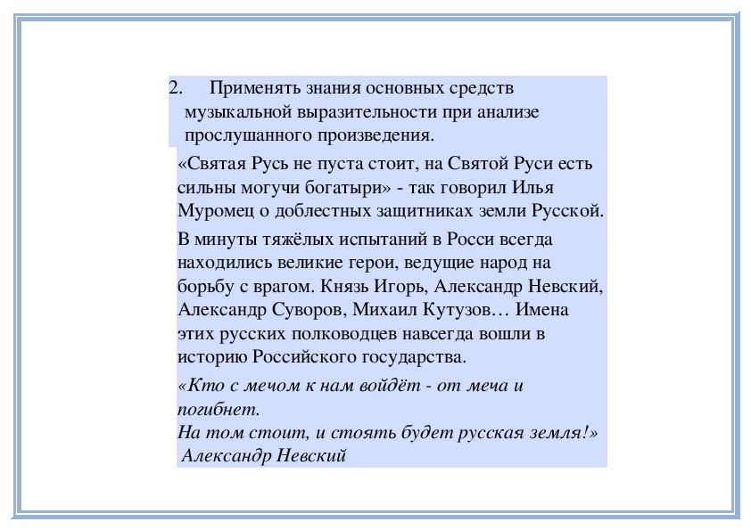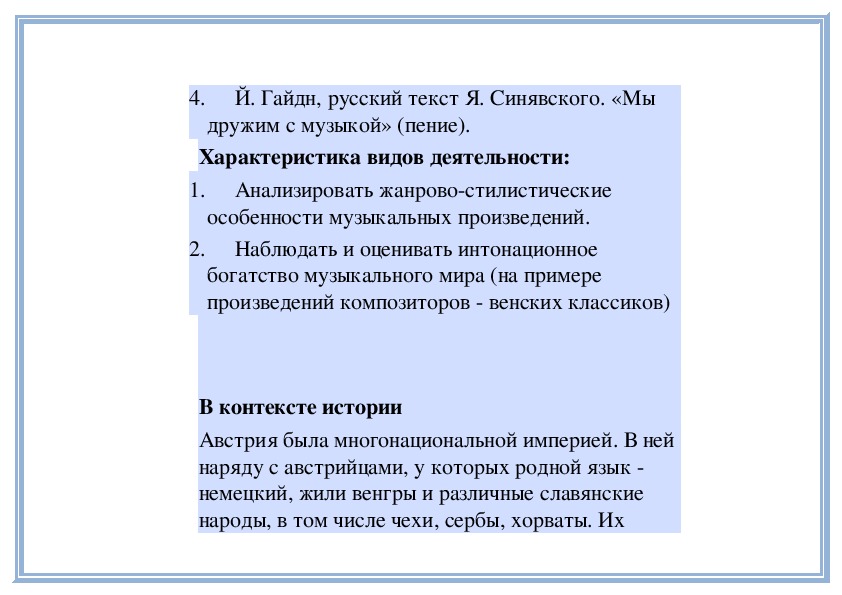 музыкальное творчество разных стран мира.2. Анализировать художественнообразное