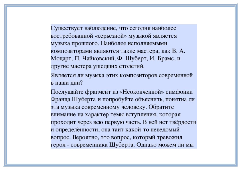 Франца Шуберта и попробуйте объяснить, понятна ли