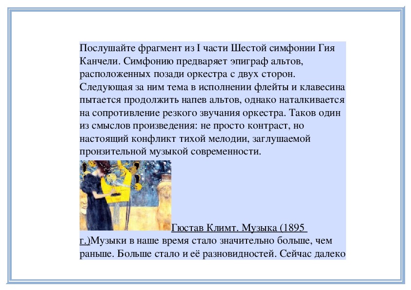 современного мира.Послушайте фрагмент из I части Шестой симфонии Гия