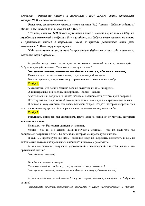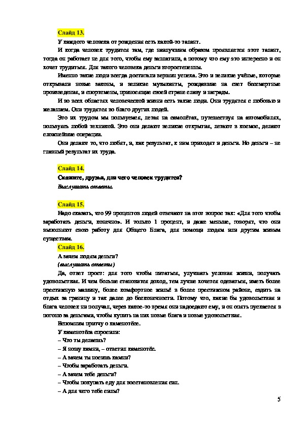 Мы платим деньги другим людям за их труд, и, наоборот, – получаем деньги за свой труд.конспект
