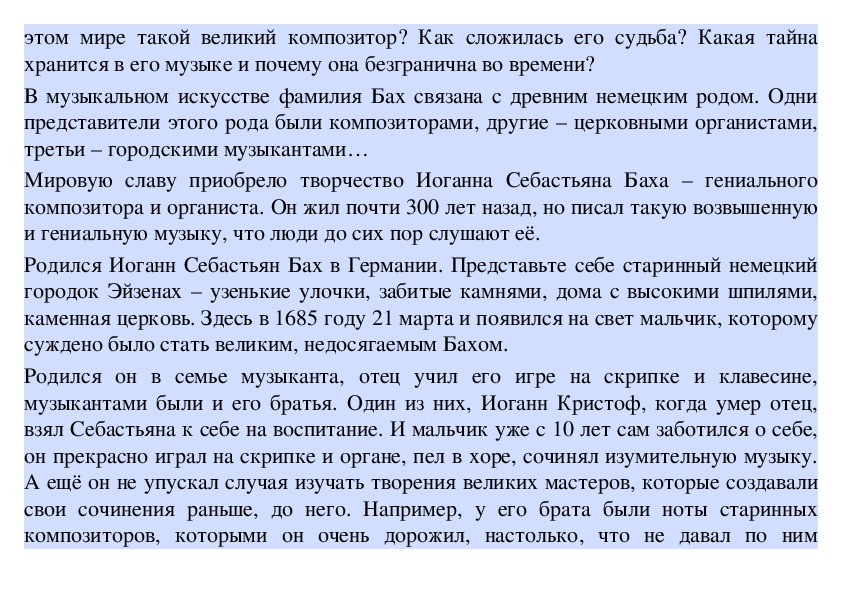 редких партий – фортепиано, хора, органа и колоколов. Подумайте. С какой целью