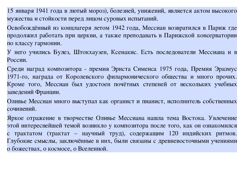 творческий путь Мессиана был спокоен и тих, ведь всю жизнь он был верен двум
