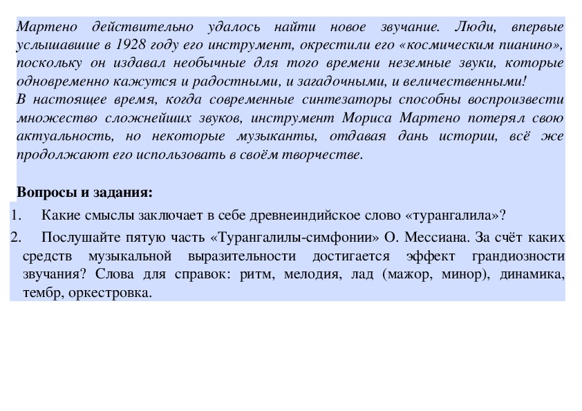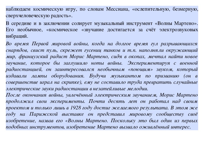 В середине и в заключении солирует музыкальный инструмент «Волны Мартено».