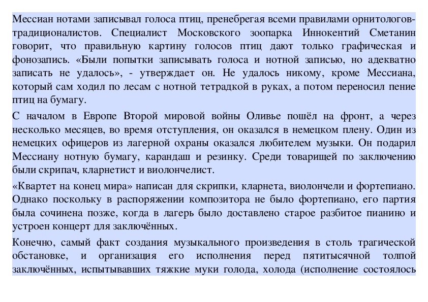 Мессиану нотную бумагу, карандаш и резинку. Среди товарищей по заключению