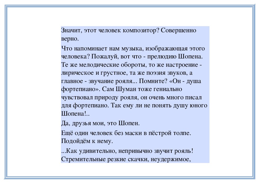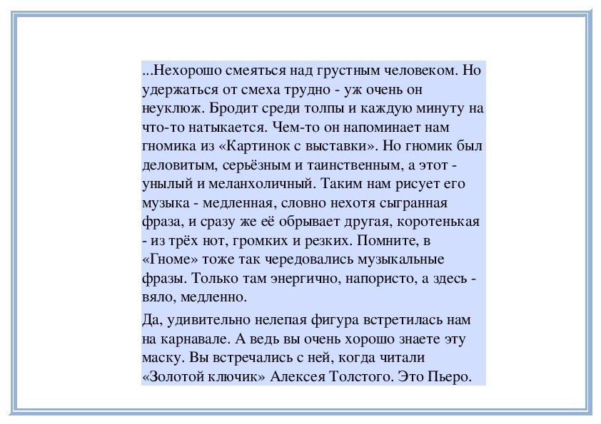 одновременно печальная музыка! (Звучит пьеса.) В