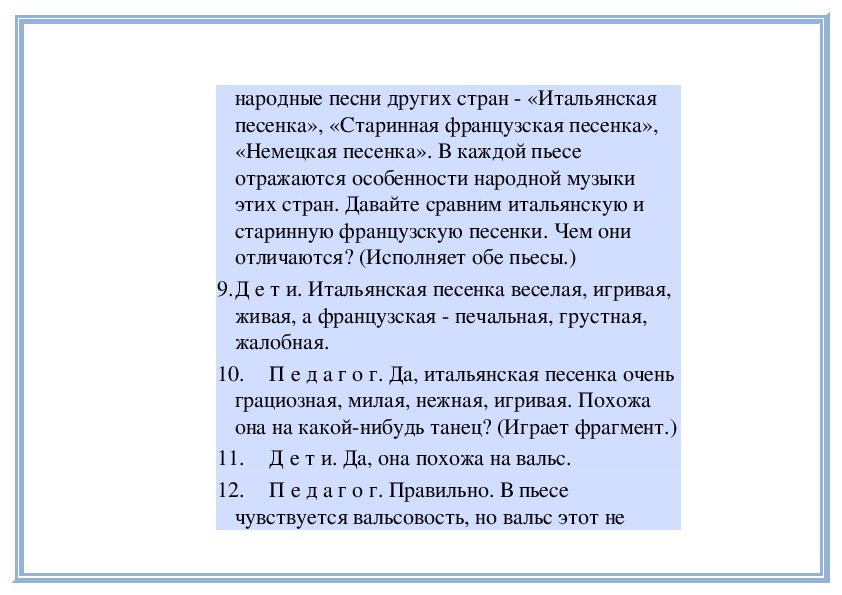 П е д а г о г. Вы знакомы с разными песнями и