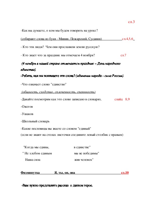 (собирают слова из букв Минин, Пожарский, Сусанин) сл.4,5,6