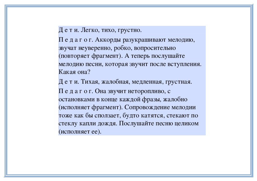 унылая, печальная, жалобная.П е д а г о г. Правильно, пьеса жалобная,